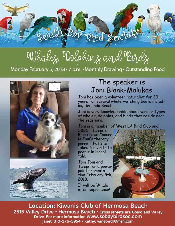 Flyer – Joni Malukas to speak at February meeting – Whales, Dolphins and Birds
