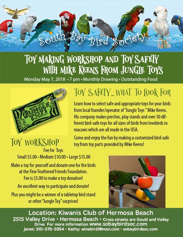 South Bay Bird Society meets the FIRST Monday of each month at the Kiwanis Club of Hermosa Beach at 7:00 p.m.